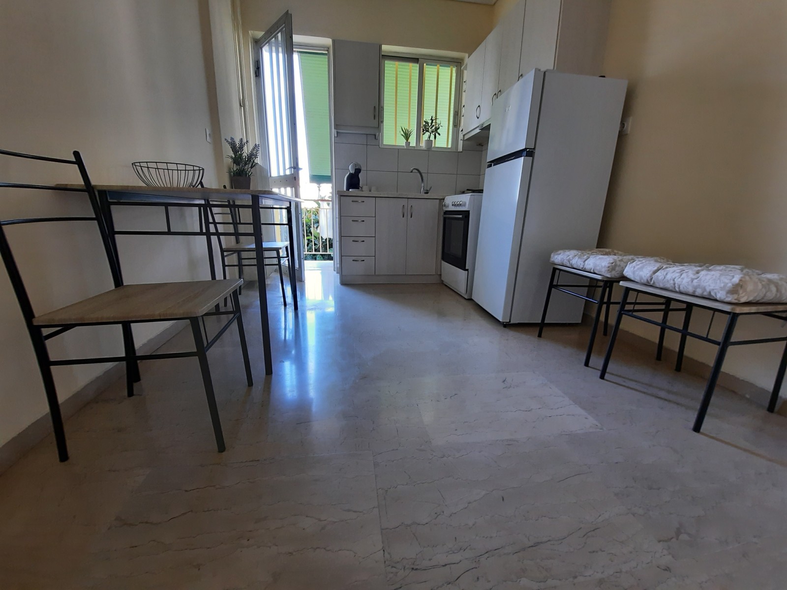 Το κλιματιζόμενο διαμέρισμα 60τ.μ. περιλαμβάνει 1 υπνοδωμάτιο με ένα διπλό κρεβάτι, σαλόνι με καναπέ κρεβάτι, πλήρως εξοπλισμένη κουζίνα με ψυγείο και καφετιέρα, καθώς και μπάνιο με ντους και στεγνωτήρα μαλλιών. Υπάρχει επίσης τηλεόραση επίπεδης οθόνης.